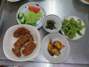 講師:食のよろず相談 出倉弘子氏メニュー:ソースカツ丼・いんげんの胡麻和え・大学芋・サラダ